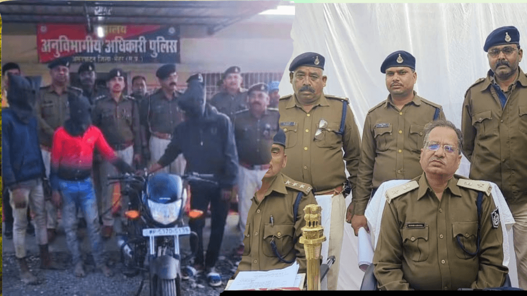 मैहर जिले के मुकुंदपुर क्षेत्र में 9 जनवरी को हुई मारपीट और लूट की वारदात में पुलिस को बड़ी कामयाबी मिली है। तीन आरोपियों को गिरफ्तार कर लूटी गई बाइक और नकदी बरामद की गई है। पुलिस अधीक्षक सुधीर अग्रवाल ने इस मामले का खुलासा किया। 9 जनवरी की रात तेजभान नट नामक युवक अपनी बाइक से रीवा से लौट रहा था। ताला रोड पुलिया के पास तीन अज्ञात लोगों ने लिफ्ट के बहाने उसे रोका। मदद के बहाने युवक को अंधेरे में ले जाकर न सिर्फ जमकर पीटा, बल्कि उसकी बाइक और 4 हजार रुपये नकदी लूटकर फरार हो गए।